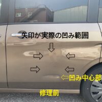 本日は、伊丹市のお客様より、ライズのドア修理のご依頼をいただきました。 お車は新車から1年未満のとても新しい状態でしたが、左折時に縁石と接触してしまい損傷されたとのことです。 修理の際、車両保険を利用すると等級が下がるた …