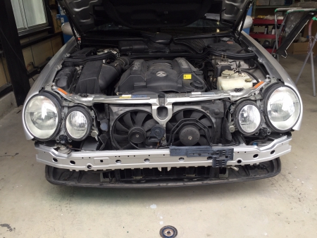 バンパーを外した状態の車です。