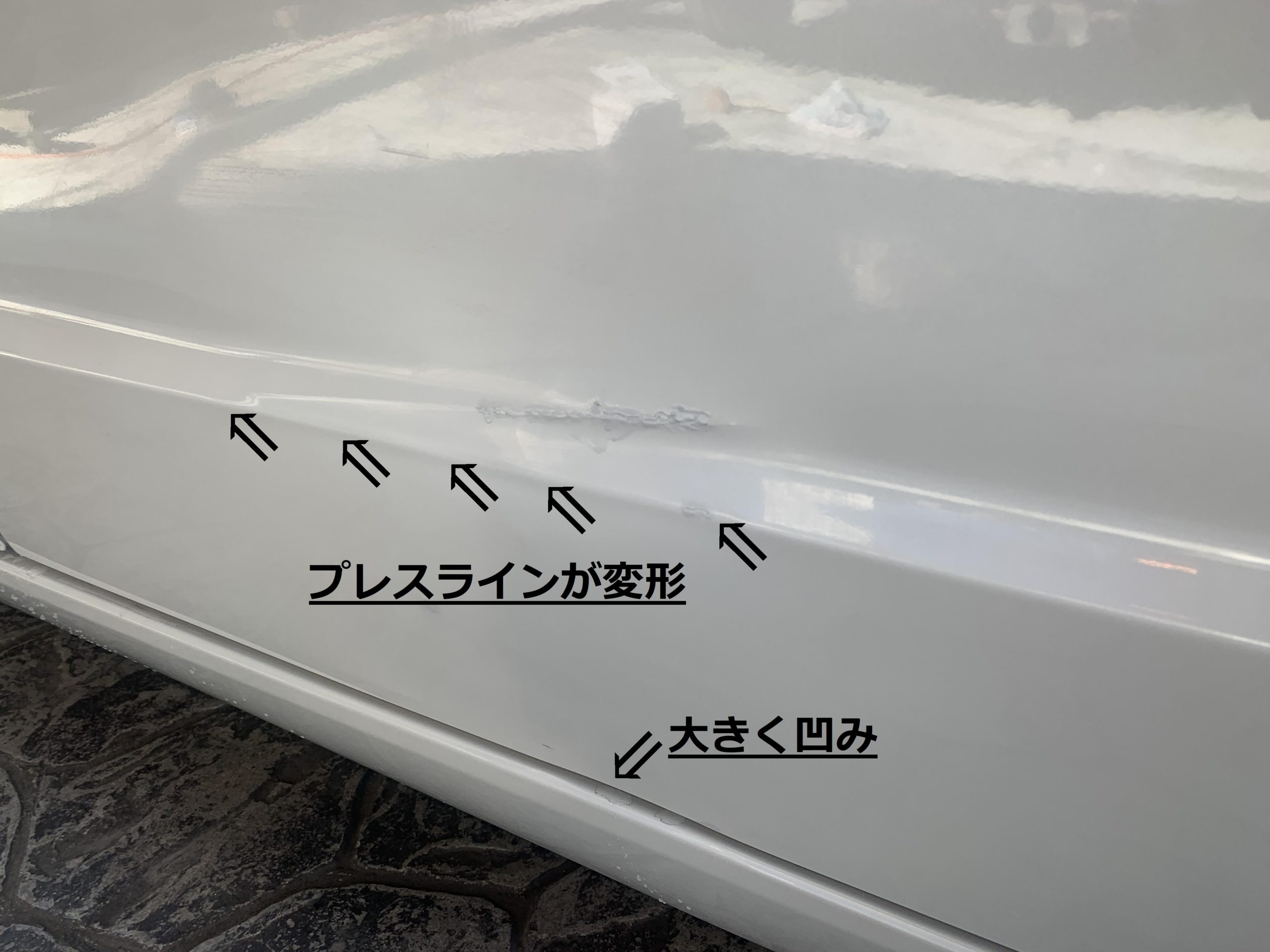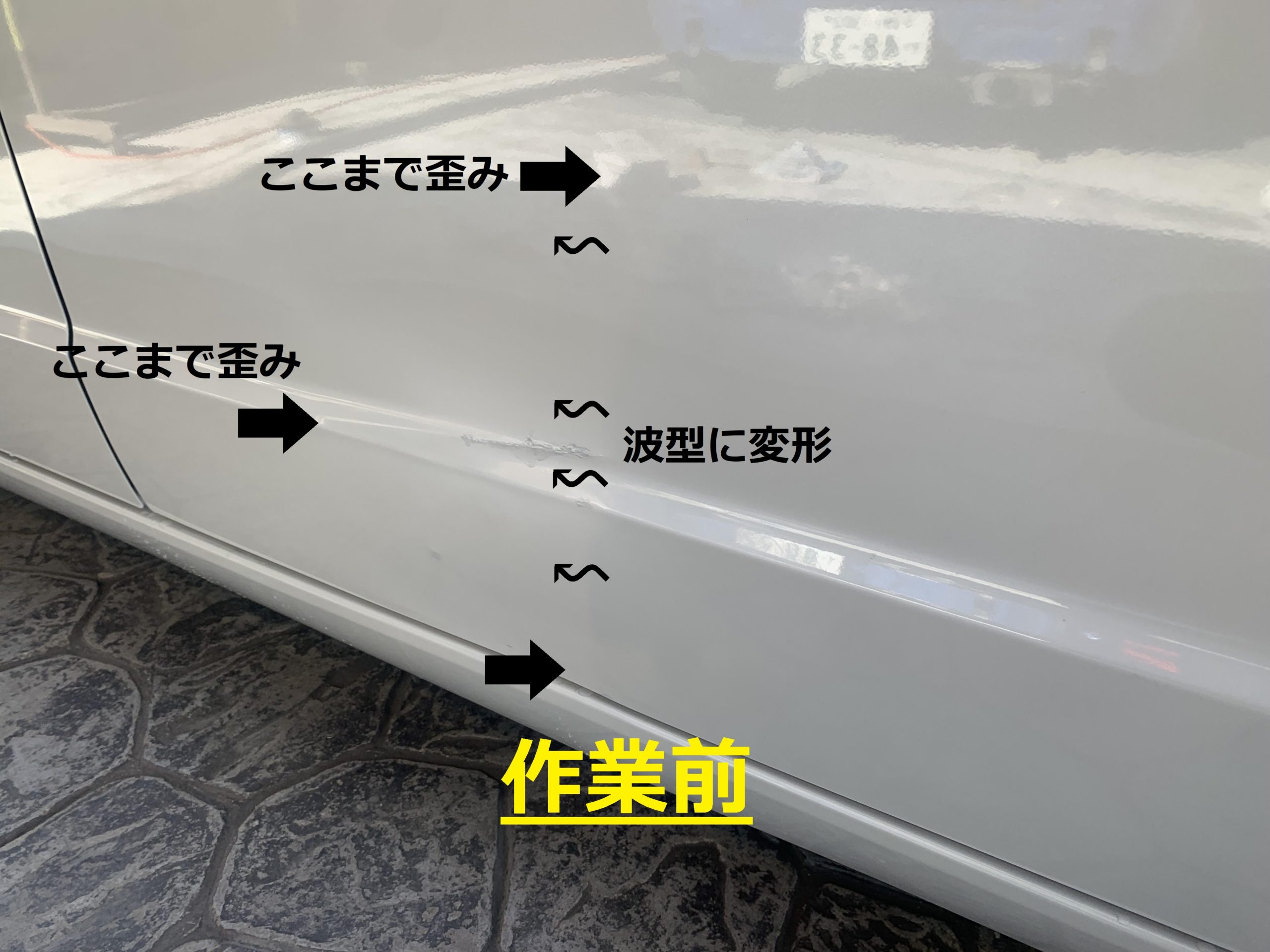 スライドドアは凹みから広範囲に歪みが出てしまいます