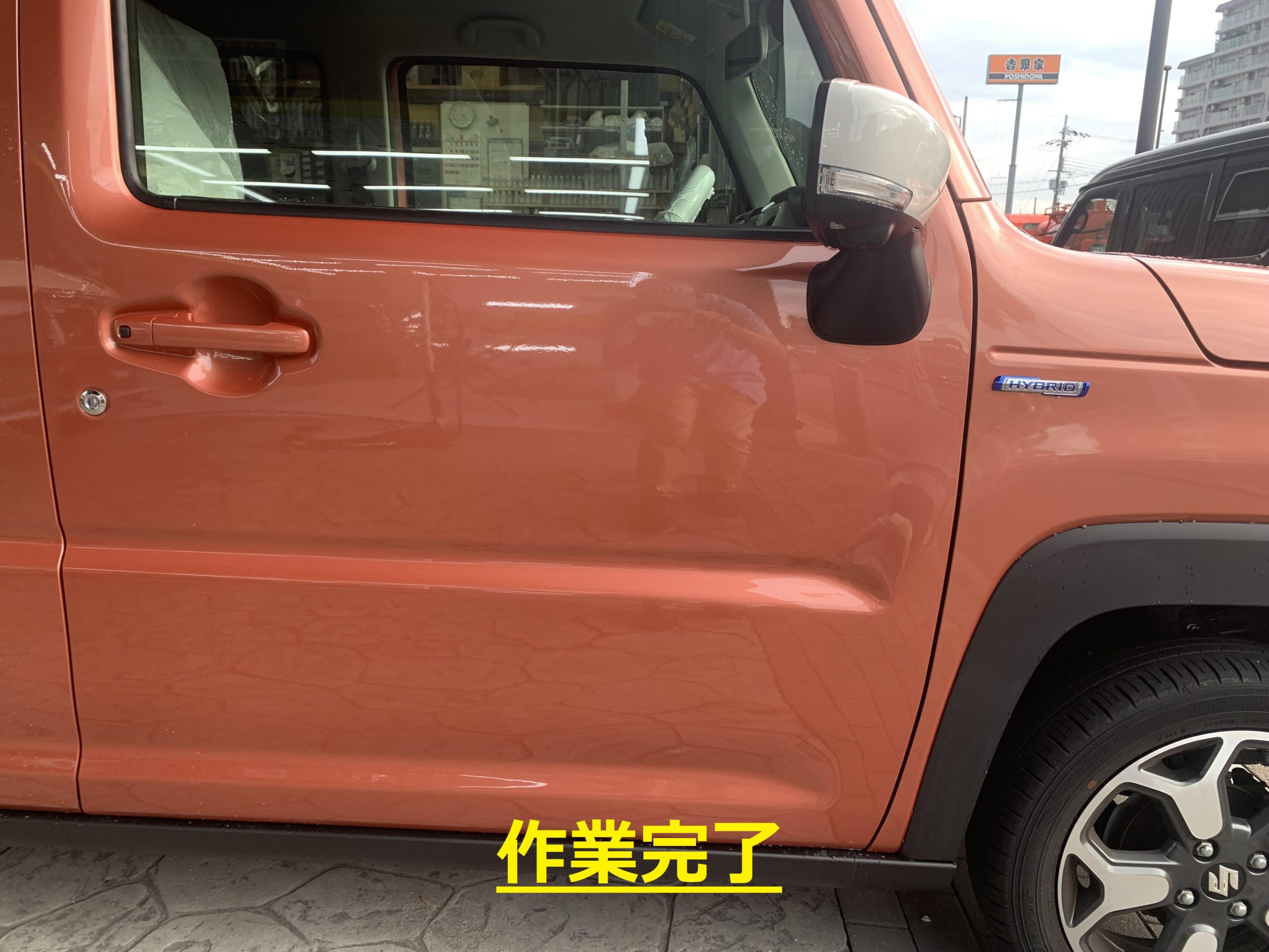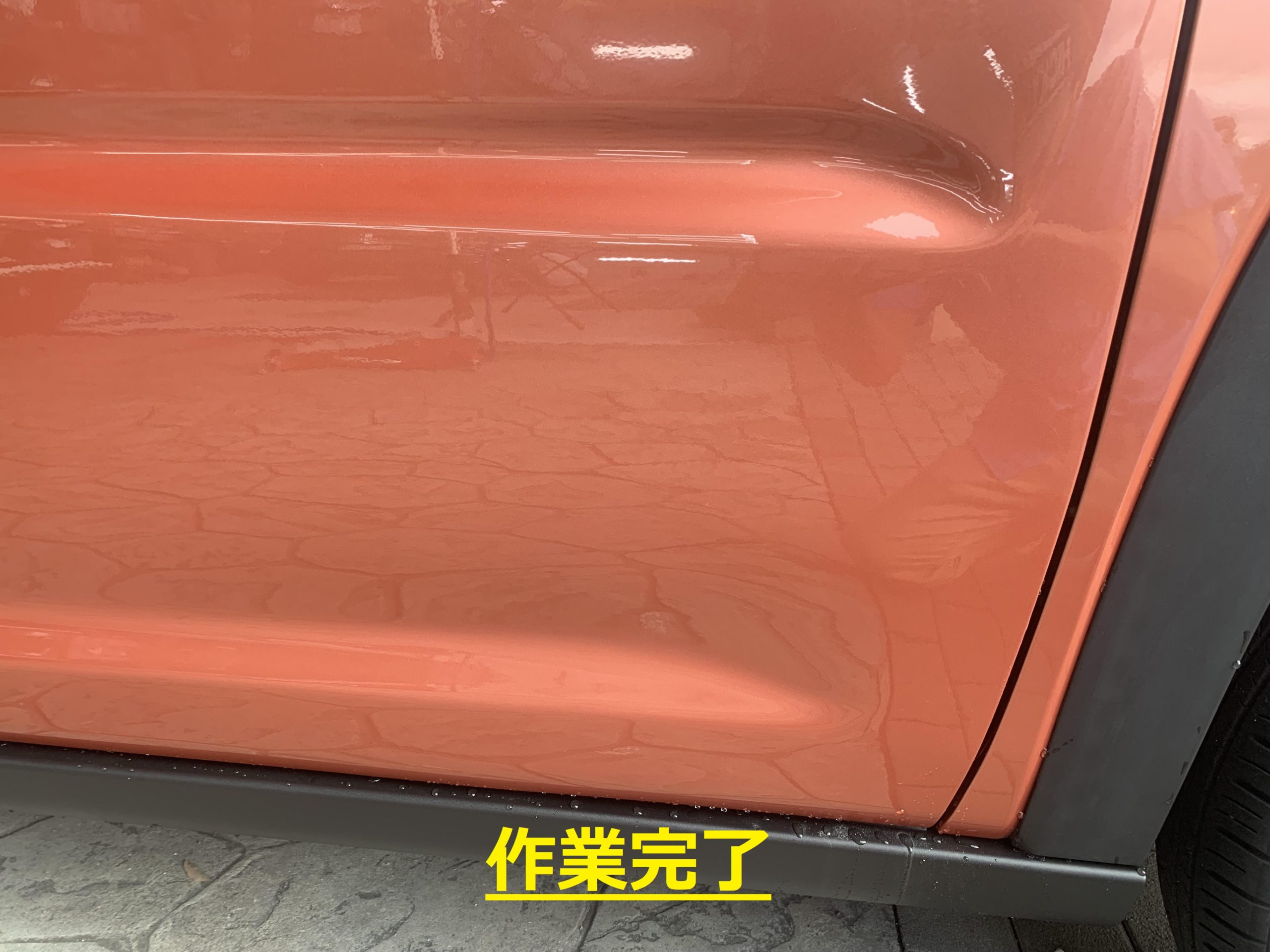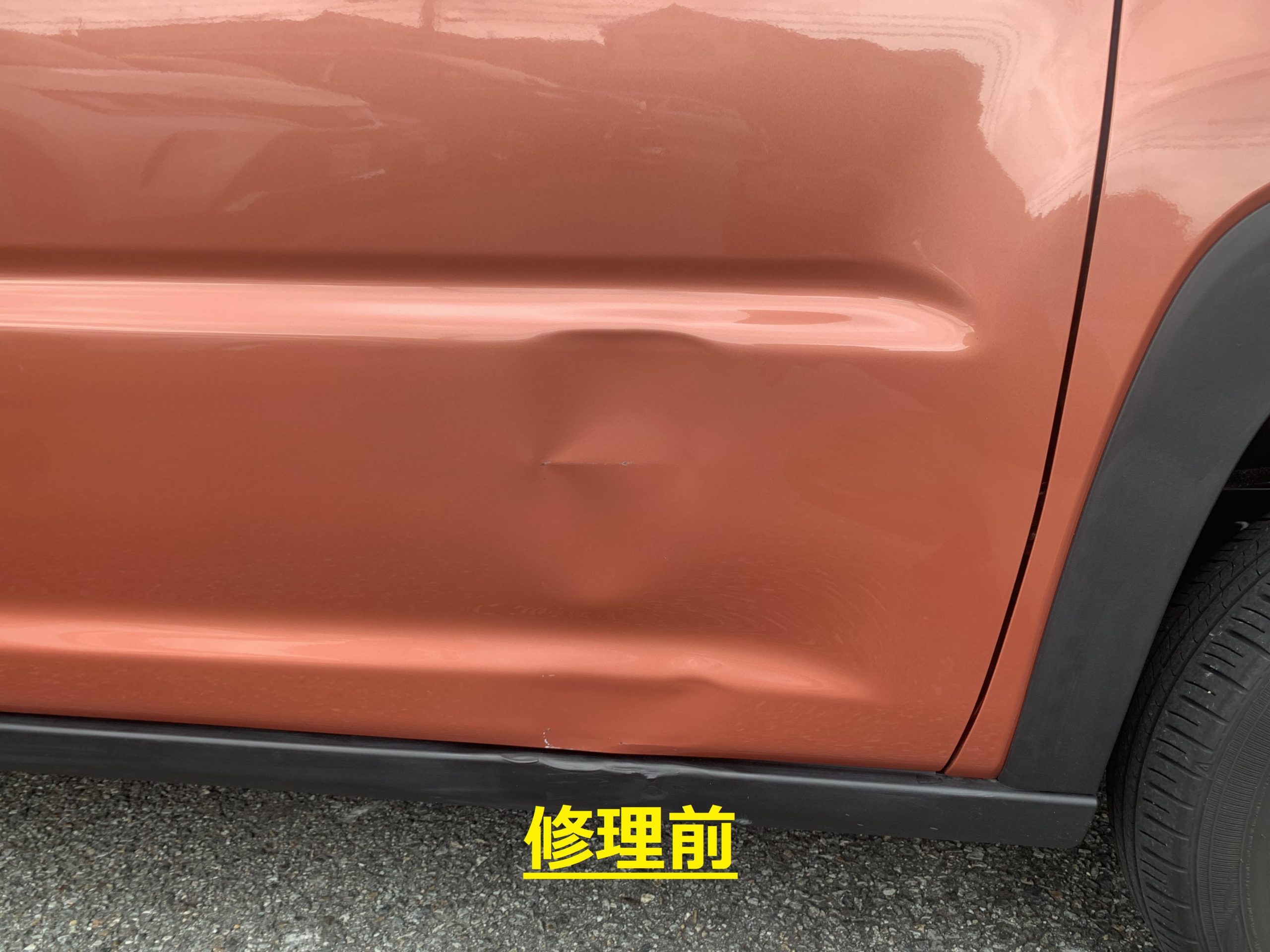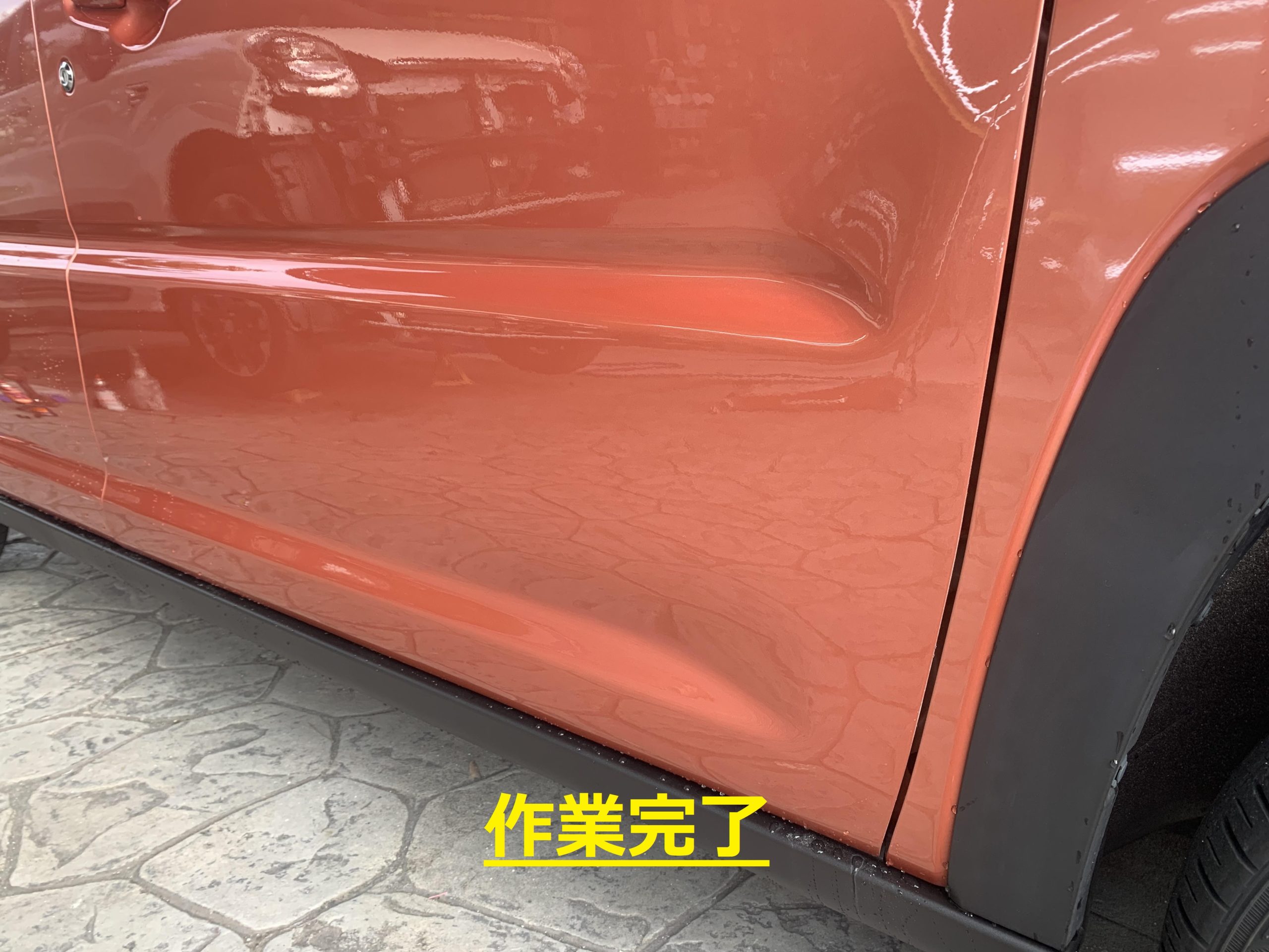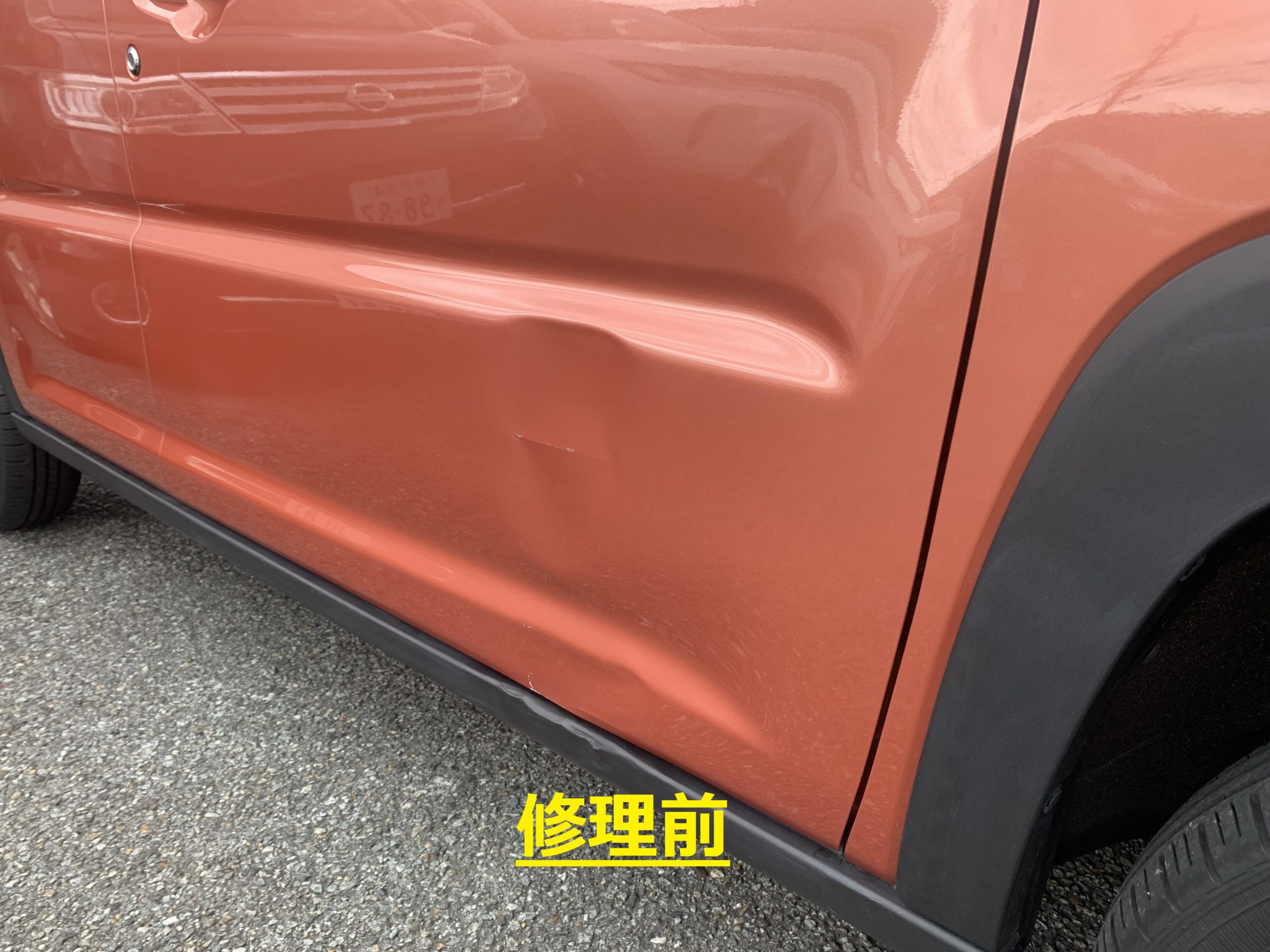 ドアの凹みが広範囲で作業スタッフも今回はかなり苦労していましたが、