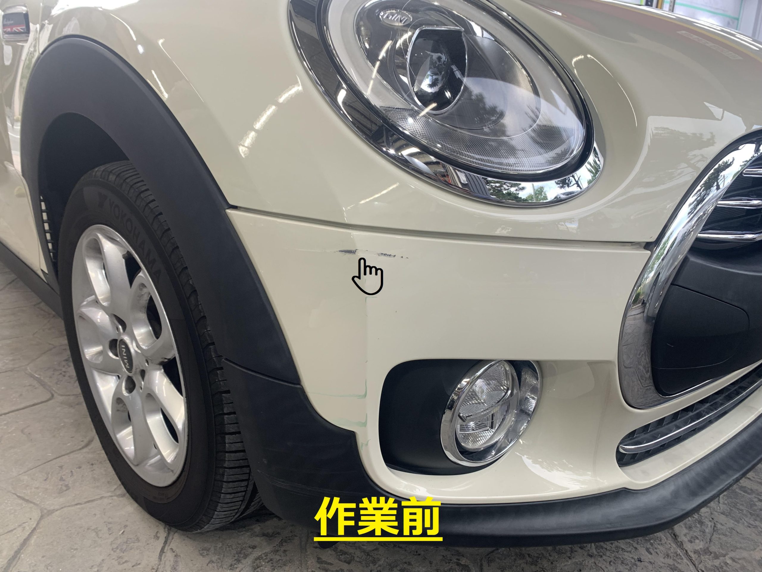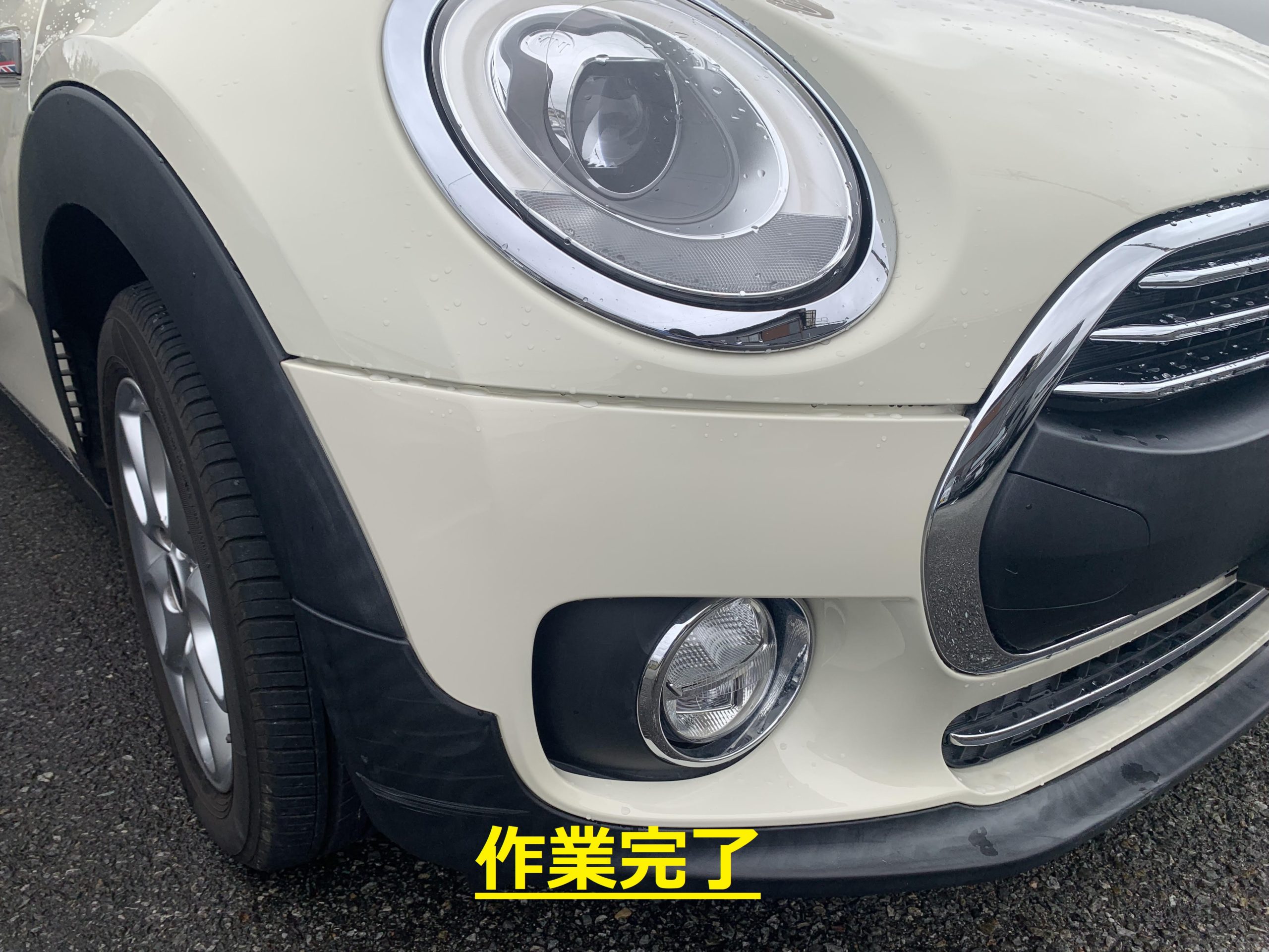 MINIフロントバンパー修理でご入庫