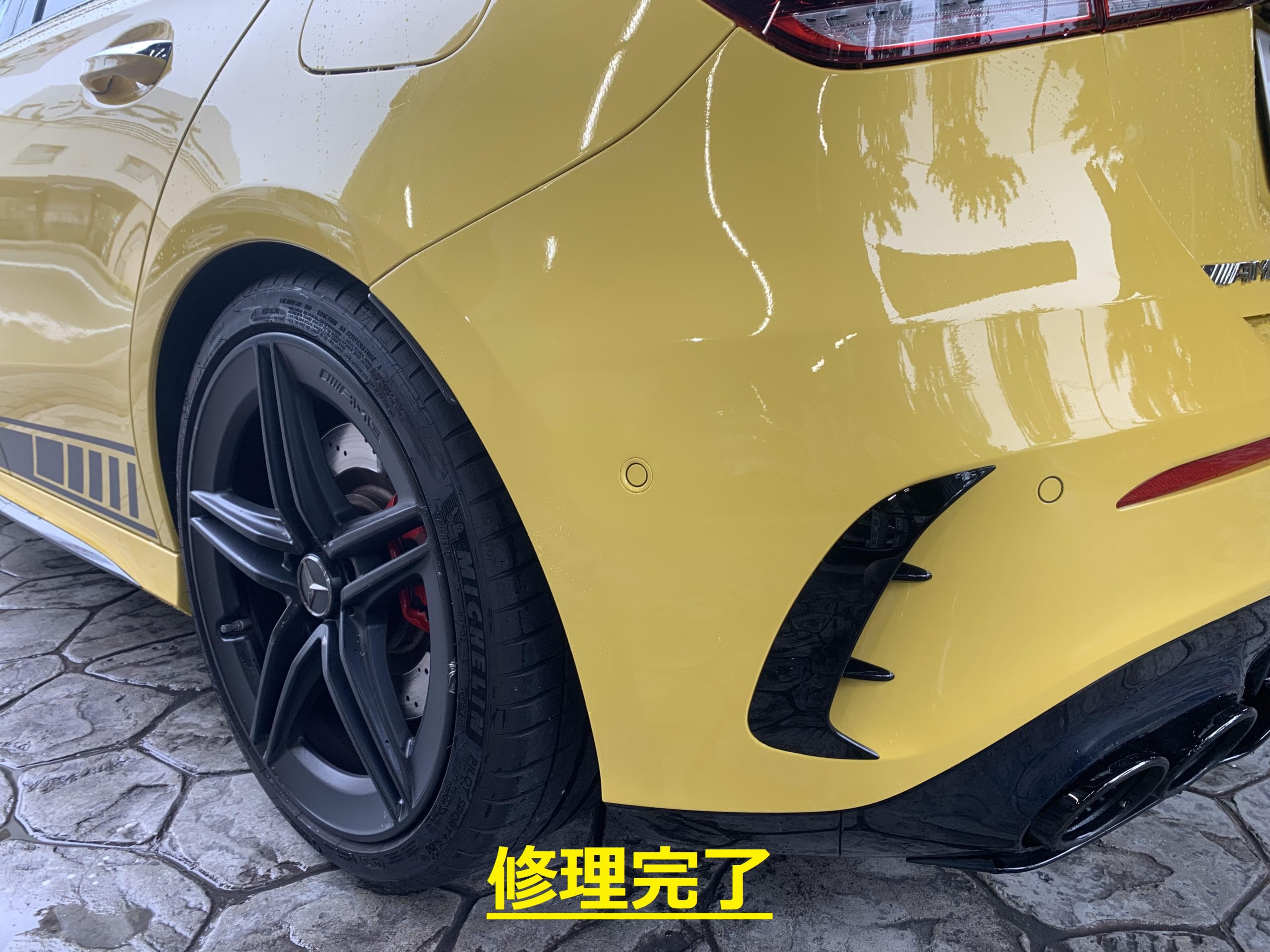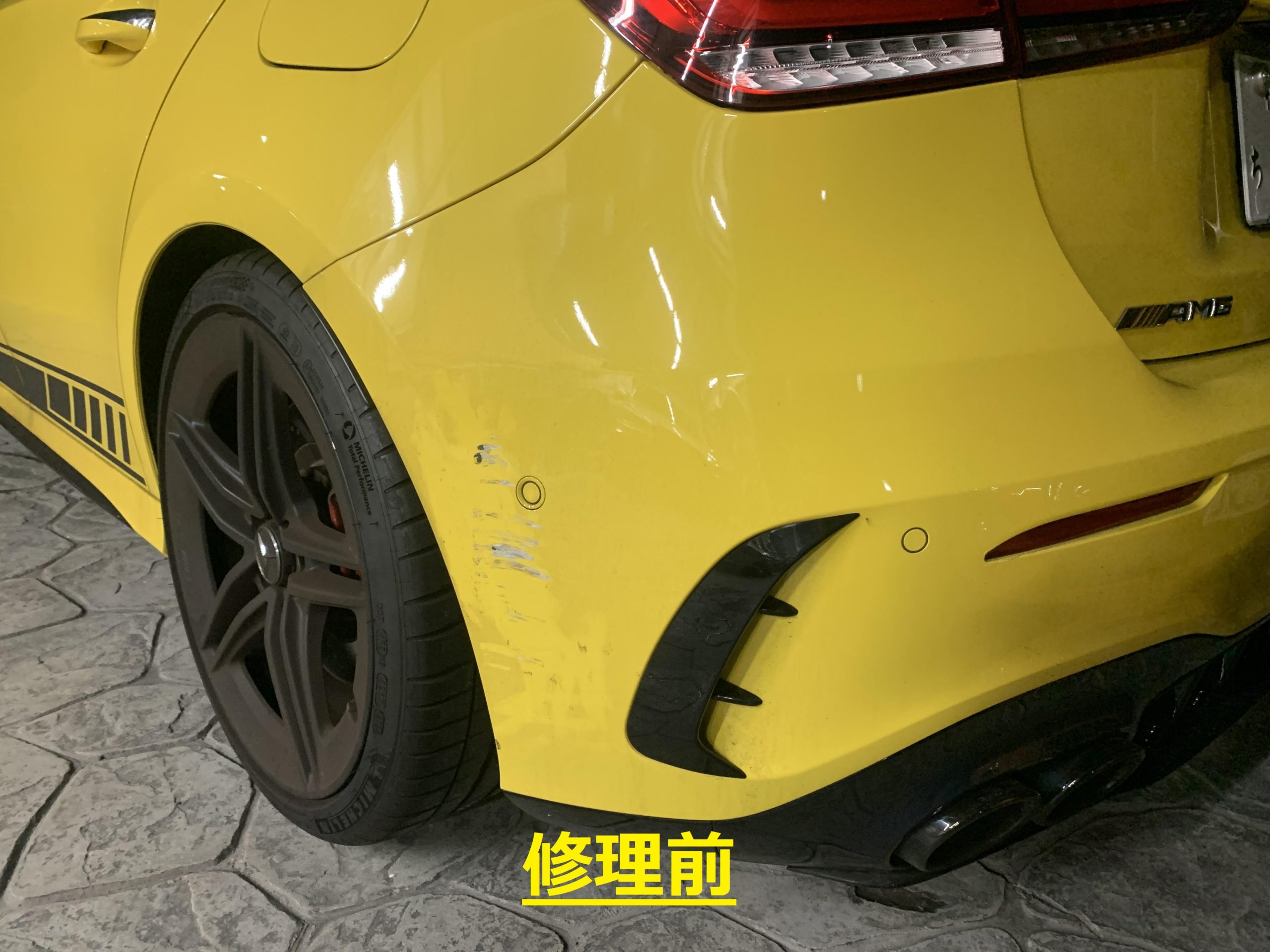 AMGとなると一つ一つの部品代が高額になりますのでこの程度の損傷では交換はしません