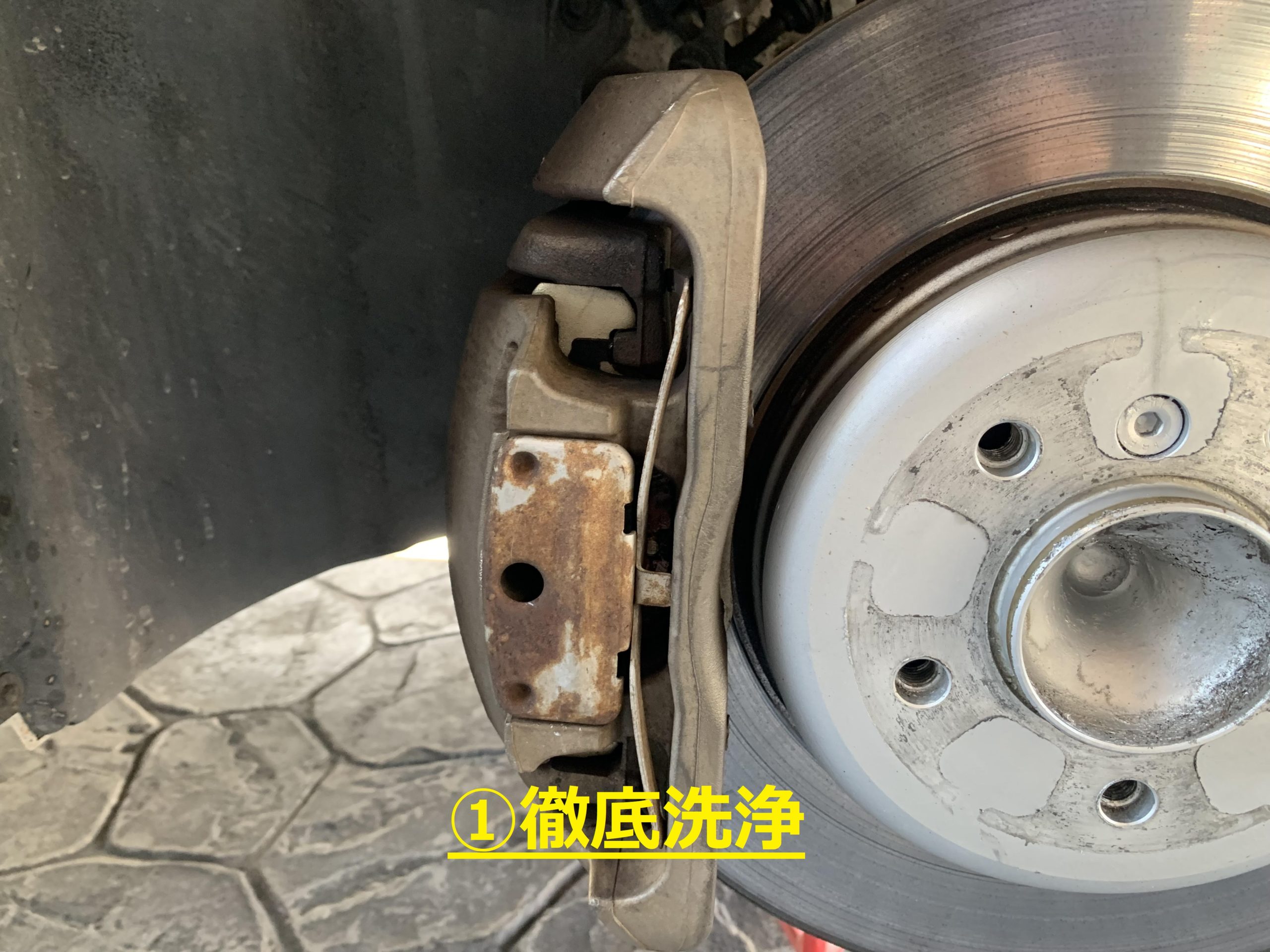 長年蓄積・固着したブレーキダスト、油汚れ様々な汚れを徹底洗浄します